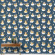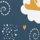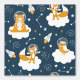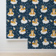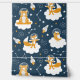 Patrón adorable con zorros, pájaros y osos en la velocidad sobre un fondo azul oscuro con estrellas blancas y amarillas.