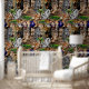 Animales salvajes de la sabana africana reunidos para componer un hermoso fondo natural, con: jirafa, rinocerontes, gacela, elefante, cebra, cocodrilo, camaleón, leopardo, chita. Original vectorial Arte Gráfico Derechos de autor BluedarkArt TheChameleonArt.