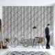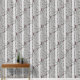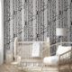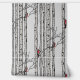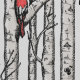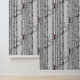 Este moderno papel pintado en el suelo está decorado con abedules dibujados a mano y pájaros cardenales rojos sobre ramas de tinta negra, con un elegante fondo gris y suave.
