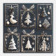 Elegantes y modernos árboles de Navidad con renos y arcos cubiertos de nieve, presentan colores monocromáticos y combinan diseño sutil y contemporáneo con la magia de la temporada invernal.
