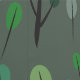 Papel Pintado Árboles verdes estilizados modernos con trompetas