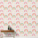 Este fondo de pantalla personalizado presenta un bonito patrón de arco iris boho sobre un fondo de color beige o crema suave. Pequeños y coloridos arcos adornados con bonitas estrellas y embaldosados a través del tapiz. Es perfecto para una guardería o una habitación para niñas.