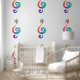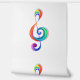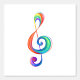 Tecla musical extraída de capas multicolores de colores arcoiris sobre fondo blanco.