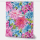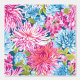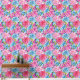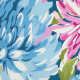 Un patrón sin fisuras de estilo perril con tonos de flores de aster rosa y azul con hojas verdes frescas sobre un sutil fondo azul. El diseño combina la elegancia floral con una estética limpia y contemporánea