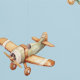 Apropiado para una guardería y un dormitorio para niños, este papel de pared tiene imágenes repetidas de automóviles antiguos y aviones de hélice vintage. Todo está colocado sobre un fondo azul claro.
