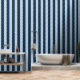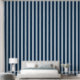 Un azul polvoriento y un papel de pared de rayas uniformemente de color azul marino ultra ancho de cuatro pulgadas.