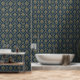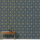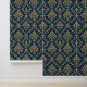 Papel Pintado Azul dorado barroco floral oscuro
