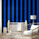 Papel de paredes de rayas uniformemente de cuatro pulgadas de color negro y azul cobalto ultra ancho.