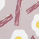 Un divertido diseño de tocino y huevos con un fondo rosa polvoriento neutro, perfecto para su cocina, cena o cafetería. Arte original de Nic Squirrell.