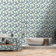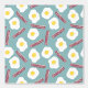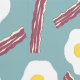 Un divertido diseño de tocino con temática gastronómica y huevos con un fondo verde verde azulado, perfecto para su cocina, cena o cafetería. Arte original de Nic Squirrell.