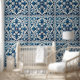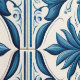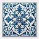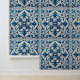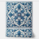 Este producto tiene un diseño intrincado con un fondo azul oscuro y patrones ornamentales blancos. El diseño recuerda a los estilos tradicionales de cerámica o porcelana, que pueden interesar a los amantes de la estética clásica o vintage.