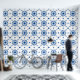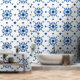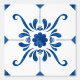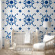 Este producto tiene un diseño intrincado con un fondo azul oscuro y patrones ornamentales blancos. El diseño recuerda a los estilos tradicionales de cerámica o porcelana, que pueden interesar a los amantes de la estética clásica o vintage.