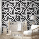 Papel Pintado Baldosas geométricas ornamentales en blanco y negr