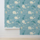Agradable para una guardería infantil, este tapiz repite imágenes de ballenas azules y blancas felices nadando bajo el mar. El diseño monocromático en tonos azules también tiene otras criaturas marinas, como el pescado y el pulpo. ¡Qué lindo para un chica o un niño!