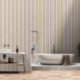 Este papel de rayas múltiples, de color rosa, amarillo y marrón, es una forma elegante de decorar una habitación.