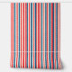 Esta obra de arte presenta un patrón audaz y directo de rayas verticales en un esquema clásico de color rojo, blanco y azul. Las rayas son uniformemente espaciadas y de grosor alternativo, creando un diseño rítmico y visualmente llamativo. El arreglo lineal y limpio de los colores da a la pieza un sentido de orden y simplicidad, mientras que el uso de matices patrióticos evoca un sentido de orgullo nacional y tradición. La repetición y el equilibrio en el patrón contribuyen a su estética fuerte y geométrica.
