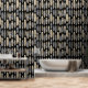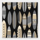 Color neutro de negro, taupe, tostado, crema, gris de acero y carbón vegetal. Las tablas de surf gráficas divertidas crean este moderno diseño de mediados de siglo. Con el nombre de Secret Beach en Kauai, este diseño es genial para esa casa de playa "secreta". Este diseño se presenta en varios colores.