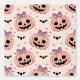 Añade un toque de dulce espanto con este singular patrón de Halloween sin costura! Con encantadoras lámparas de jack-o' rosas adornadas con arcos violetas, esparcidas con murciélagos negros y estrellas brillantes sobre un fondo rosa claro. Perfecto para una decoración divertida, femenina y festiva de Halloween.