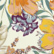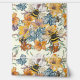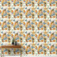 Esta vibrante obra de arte cuenta con una animada composición de abejorros y flores intrincadas en plena floración. Los elementos florales, representados en ricos tonos de naranja, azul y amarillo, crean un tapiz colorido que contrasta maravillosamente con los detallados ilustraciones de las abejas. El fondo cremoso realza la vitalidad de las flores y la energía dinámica de las abejas zumbantes, dando lugar a un patrón animado y atractivo que celebra la armonía de la naturaleza.
