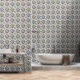 Papel Pintado Blue Gold & White Talavera Azulejo Look Tile