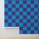 Añade una ráfaga de azul a tus paredes con esta cáscara y papel pintado. El patrón geométrico tiene un patrón de tablero de ajedrez de cuadrados azul medio y azul marino.