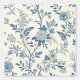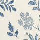 A detailed vintage floral illustration in blue tones, featuring delicately drawn branches, leaves, and blossoms on a light background, creating a classic and elegant botanical look. Toile-de-Jouy