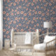 Papel Pintado Blush & Blue Modern Floral Vines Pattern