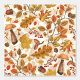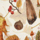 Patrón otoñal pintado a mano con varias hojas otoñales, bayas, bellotas, aves y setas