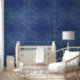 Blue and black artwork. Mandala design with decorative botanical elements made from lichens.