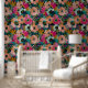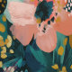 Este colorido diseño botánico con patrón floral presenta vibrantes flores rosadas, azul verdoso y doradas en una disposición audaz y artística. Perfecto para los amantes del estilo floral moderno, añade un toque brillante y elegante y aporta un ambiente botánico alegre a cualquier espacio.