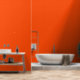 Solid orange background with a subtle vertical texture. The warm, vibrant hue conveys a sense of energy and positivity.
