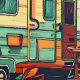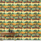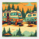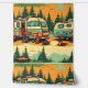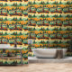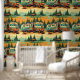 Naranja, azul y verde vintage retro camper en el bosque. Papel pintado de Guay y pelos para los que aman el camping.