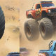 Papel Pintado Carreras De Camiones Monstruos En El Desierto,