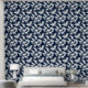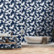 Transforme la habitación de sus hijos con este papel tapiz de vivero extraíble de cáscara y palo con un tema de dinosaurio en colores azul marino y blanco.