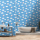 Papel Pintado Cerdo ondulado con alas en patrón azul