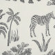 This elegant charcoal grey safari animal design brings a sophisticated, subtle touch of the wild to any interior. The design features beautifully detailed illustrations of giraffes, elephants, and zebras, interspersed with stylized acacia trees and tropical foliage. The clean, off-white background contrasts perfectly with the deep charcoal grey block-print style animals, giving it a classic, high-end feel. This gender-neutral wallpaper is ideal for creating a calm, modern nursery, a subtle child's bedroom theme, or a refined feature wall in a living space. Search ID1241 to see products with this fun pattern. Note: design adapted from generative content.