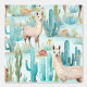 Mejora tus creaciones con este encantador patrón de acuarela sin fisuras, con llamas adorables y cactus desérticos. Este ilustracion botánico, pintado a mano con meticuloso detalle, combina la elegancia de los colores pastel neutros con un agradable fondo azul. Perfecto para una variedad de aplicaciones, incluyendo proyectos de diseño, impresiones de tela, decoración doméstica y fondos, este versátil patrón seguramente le añadirá un toque de belleza natural y caprichosa a cualquier proyecto. En esta encantadora pieza artística, ideal para los amantes de la naturaleza y de los animales, podrá disfrutar de la combinación única de llamas y cactus.