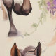Caballo acuarela con hermosas flores de cola y cola, rosadas y púrpura.