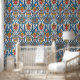 Este lujoso papel pintado presenta un patrón de porcelana otomana con tulipanes al estilo damasco.