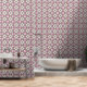 Decoren su casa con este papel pintado con un diseño tradicional de baldosas barcelonesas en rosa y rojo. Diseño de mosaicos de Barcelona, España. Un patrón tradicional de finales del siglo XIX y principios del siglo XX. Flores con cintas rosas. Barcelona es una ciudad española y entre muchas cosas es conocida por sus coloridas baldosas de cemento. Estos motivos de mosaico, a veces geométricos, se encuentran en los pisos y en la pared. Las baldosas son muy apreciadas, ya que le dan un aspecto de época mediterránea y le dan un toque de casa. Como si estuvieras en España. Las baldosas de cemento no se hornean en un horno sino que son una versión del cemento Portland. La primera capa aplicada es el patrón de color y la segunda, más gruesa, es la capa de cemento gris. Luego están apretados juntos. La capa de patrón superior se fusiona con la capa de cemento inferior. Este tipo de mosaico es muy duradero.