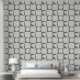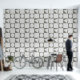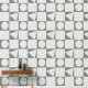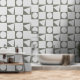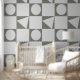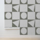 Este fondo de pantalla geométrica presenta un patrón repetido de círculos y triángulos en varios colores sobre un fondo blanco. Es una buena manera de darle un toque moderno y lúdico a cualquier habitación.
