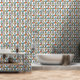 Añade un toque de color a tus paredes con este fabuloso papel pintado retro de mediados de siglo. El azul turquesa, los tonos naranjas, dorados, tostados y negros, es luminoso y atrevido.