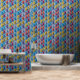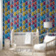 Este lindo papel pintado presenta un patrón hecho de rascacielos que se asemejan a una gran ciudad.