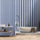 Papel Pintado Clásica Marina eterna Bandas simples azules y blan
