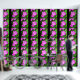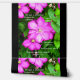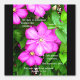 Flores vibrantes magenta clematis florecen con un fondo de hojas verdes, intercaladas con una cita religiosa de romanos 5:3-5 en escritura elaborada. Los pétalos brillantes de las flores atraen la atención, mientras que la vegetación contrastante resalta los detalles intrincados de las flores y el texto cuidadosamente colocado. Esta fue una hermosa parra clematis florida en la casa de un amigo en junio de 2013. La escritura es de una Biblia Nelson KJV de 1913 que alguna vez perteneció a mi abuelo, mi tío abuelo John.