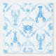 Watercolor lobsters, crabs, and seashells in soft light blue with a linen texture. A relaxed coastal design for preppy beach house style.