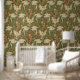 Papel Pintado Cockatoo and Pomegranate in bamboo green