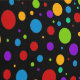 Coloridos puntos de la Polka Arcoiris sobre el diseño negro.