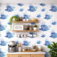 Papel Pintado Copa de café azul artístico con patrones de nataci