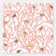 Perfecto para una decoración casera costera inspirada en el océano, este vibrante diseño de coral presenta un patrón de ramas coralinas entrelazadas en un fondo blanco, con conchas dispersas entre las ramas.
